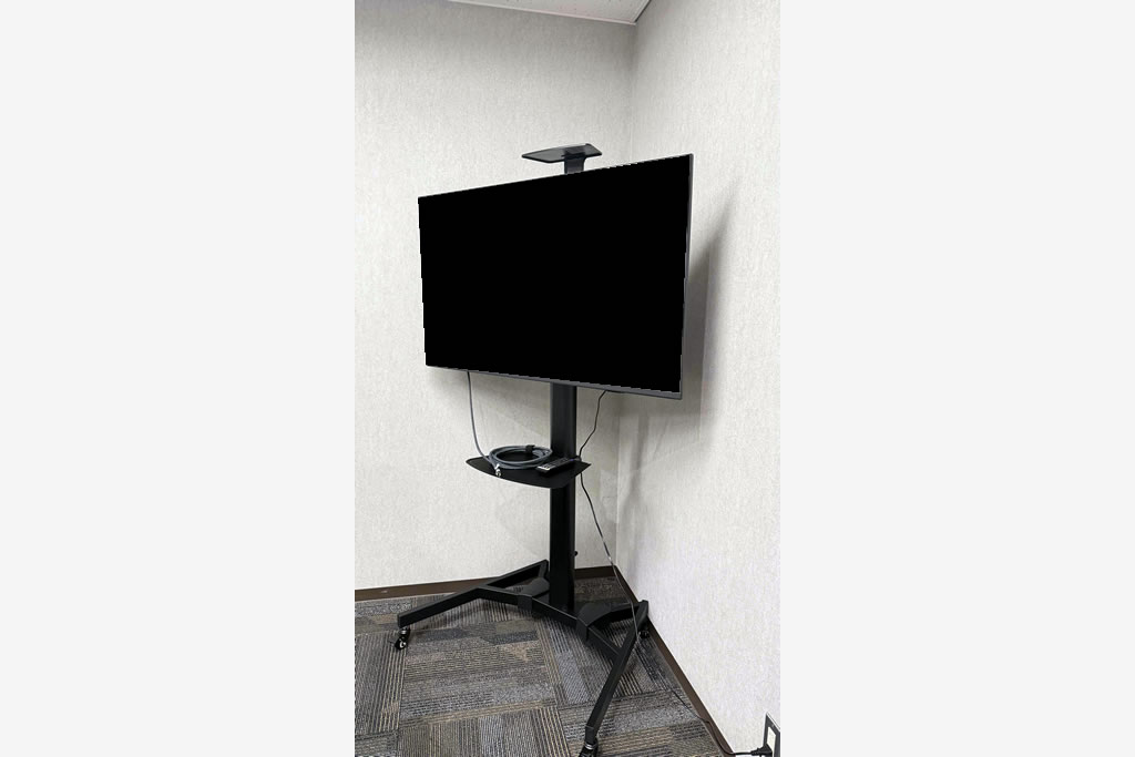 50型液晶ディスプレイ設置しました。お持ちのPCを接続するだけで、オンライン会議や画面共有にご利用いただけます。