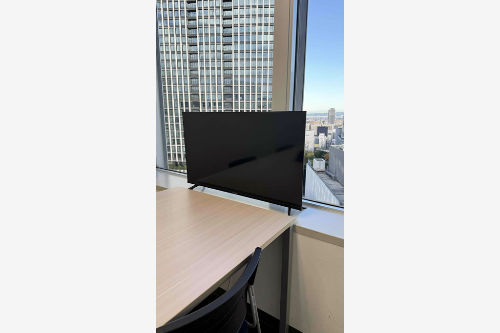 40型液晶ディスプレイ設置しました。お持ちのPCを接続するだけで、オンライン会議や画面共有にご利用いただけます。