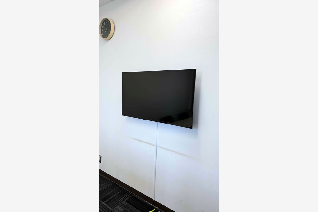 40型液晶ディスプレイ設置しました。お持ちのPCを接続するだけで、オンライン会議や画面共有にご利用いただけます。